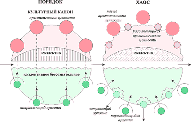 осознание группой ставших догмой архетипических ценностей) и индивидуальными