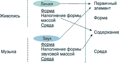 выше схема ясно и логично указывает на то, что элементы музыки и живописи